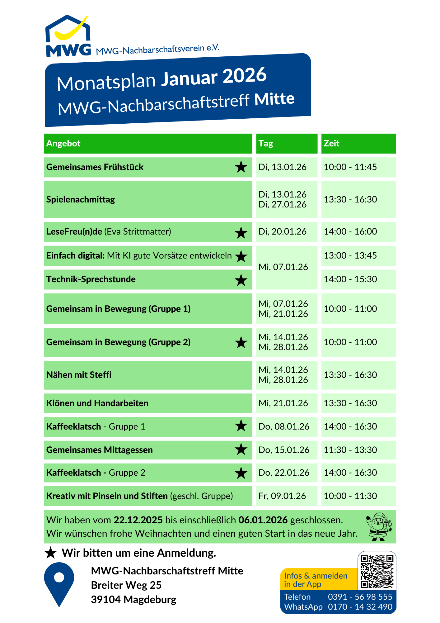 Angebote in den MWG-Nachbarschaftstreffs