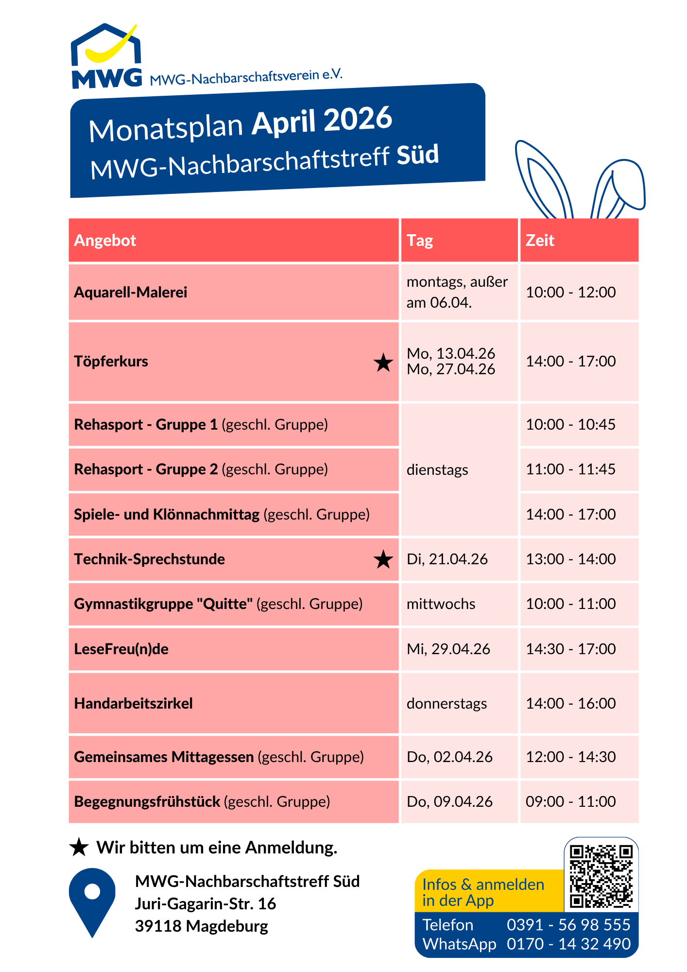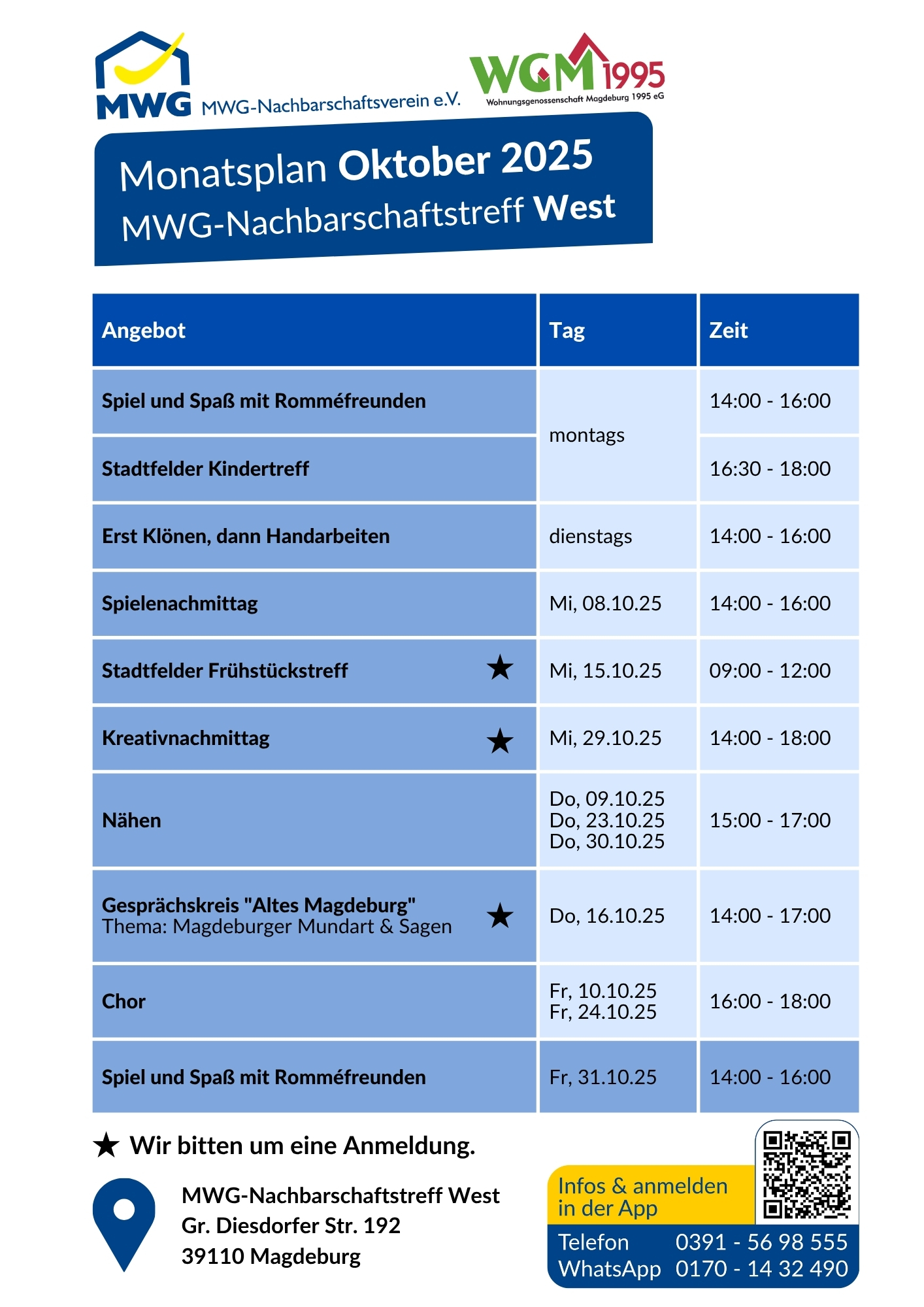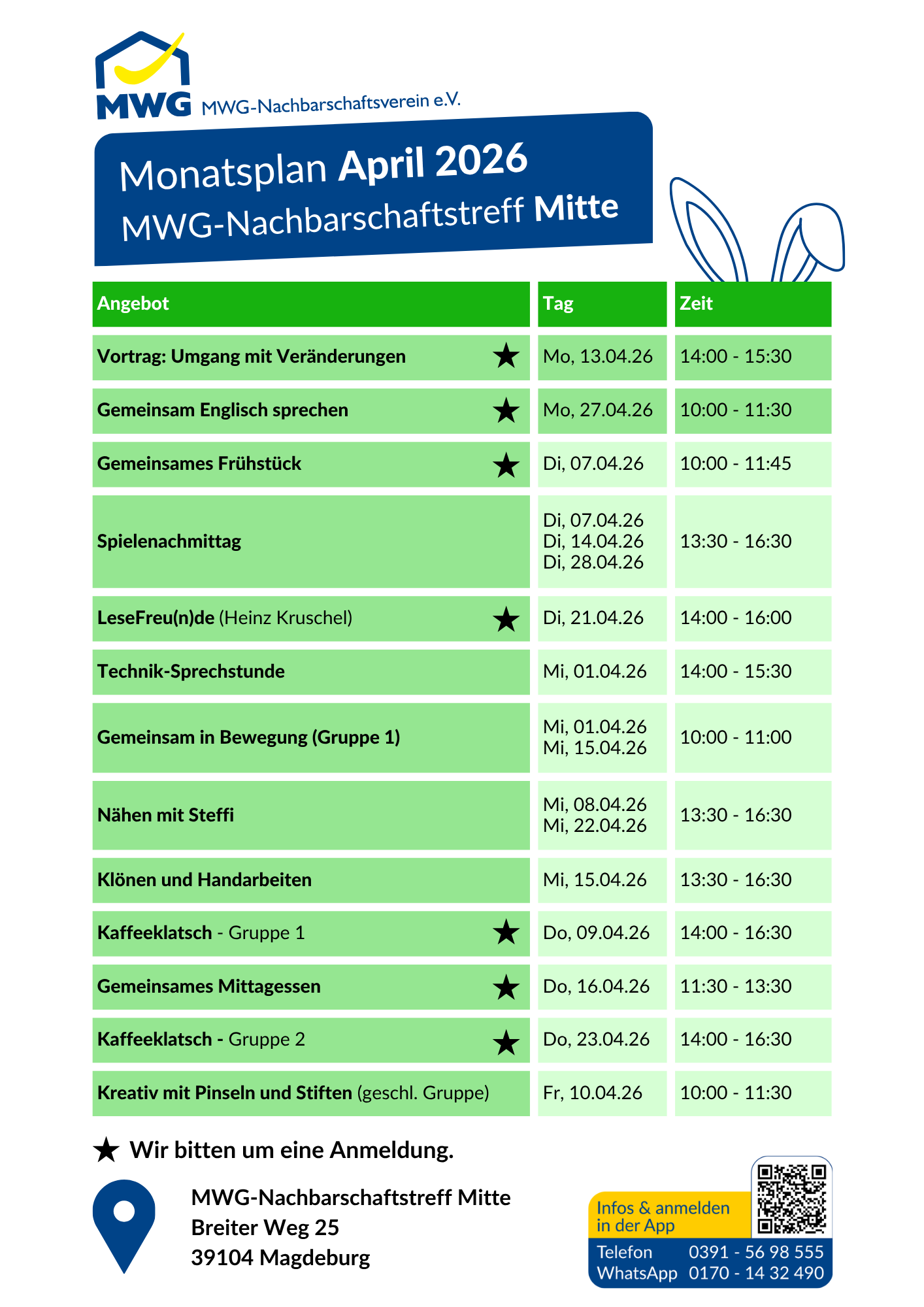 Angebote in den MWG-Nachbarschaftstreffs