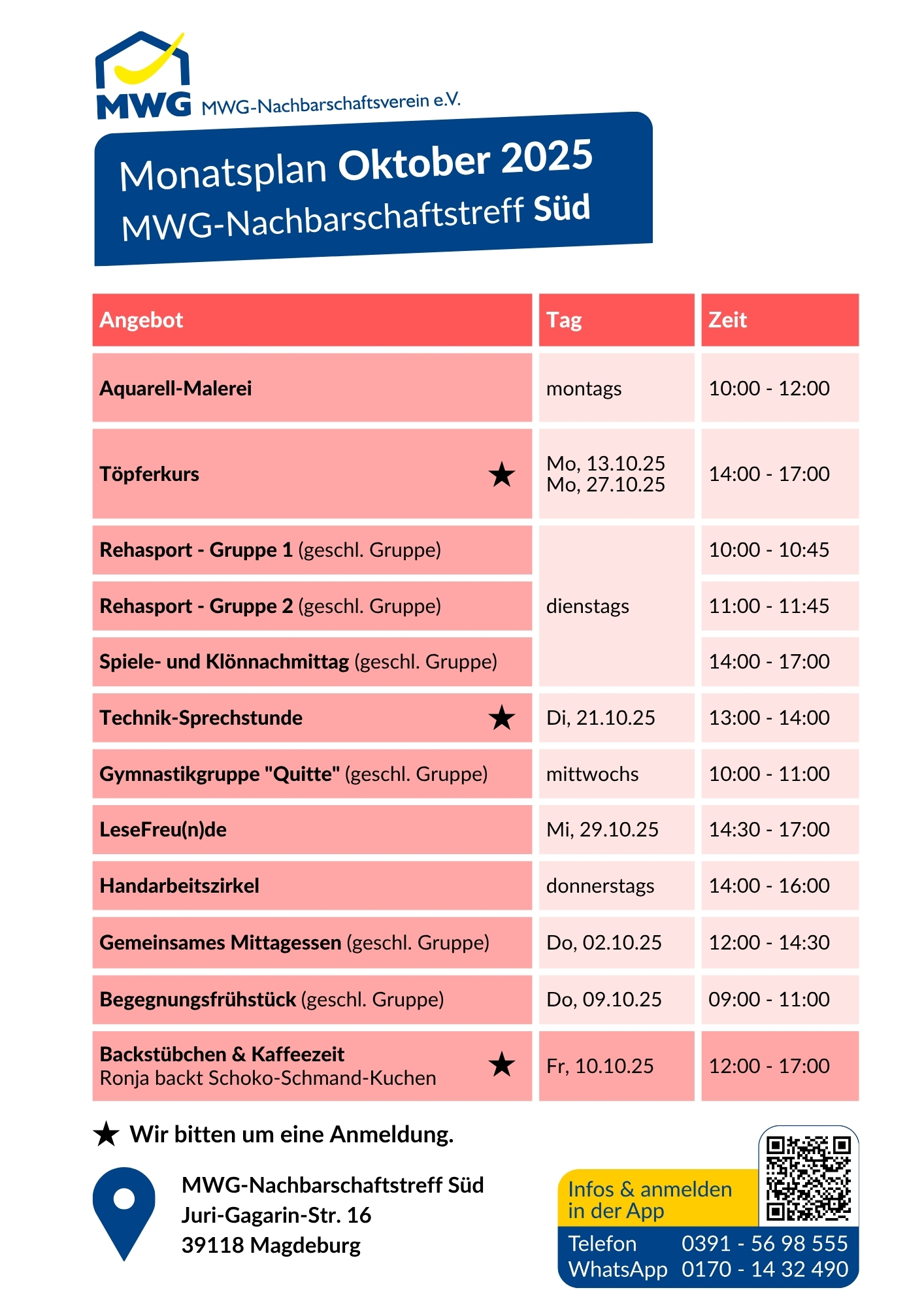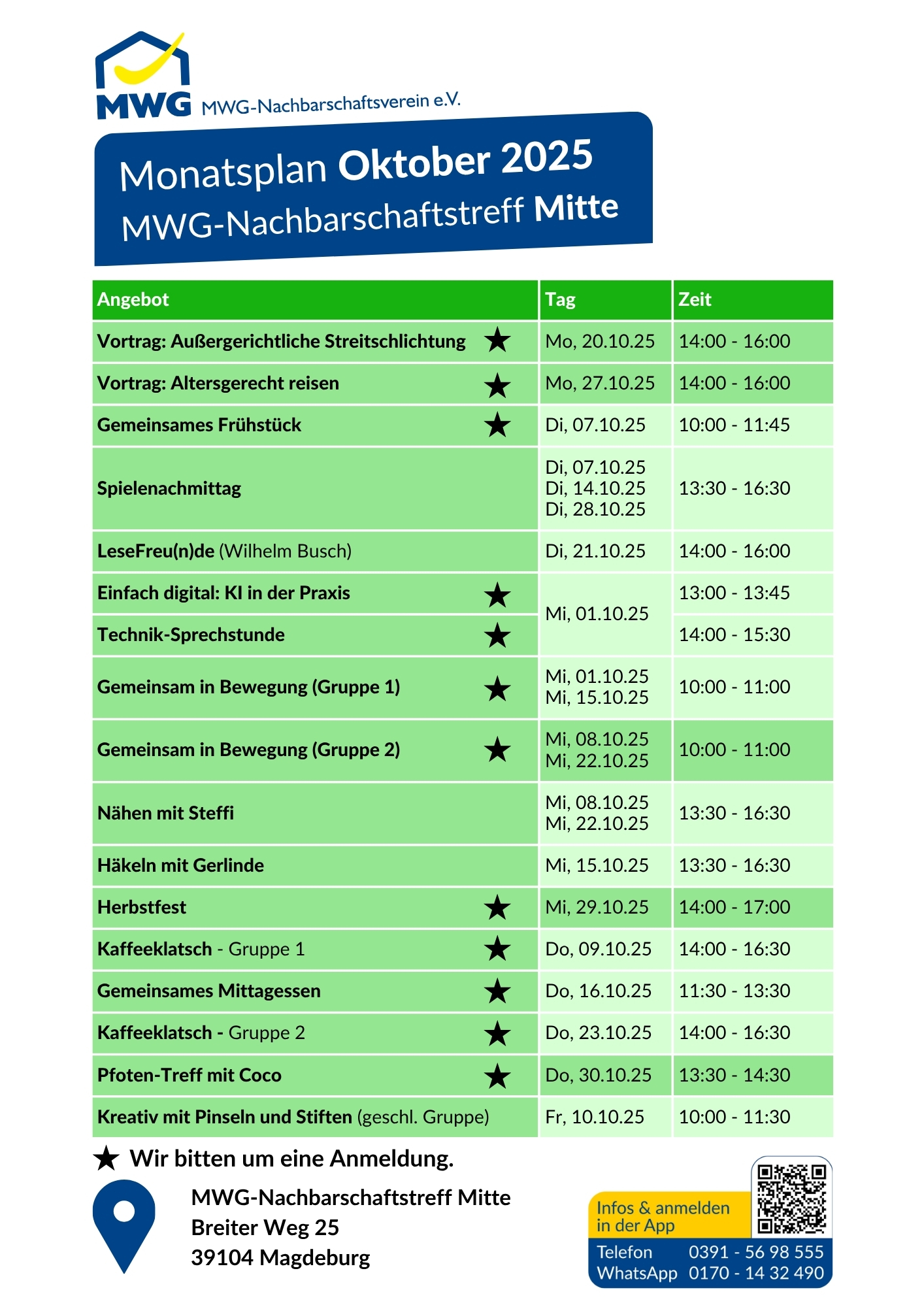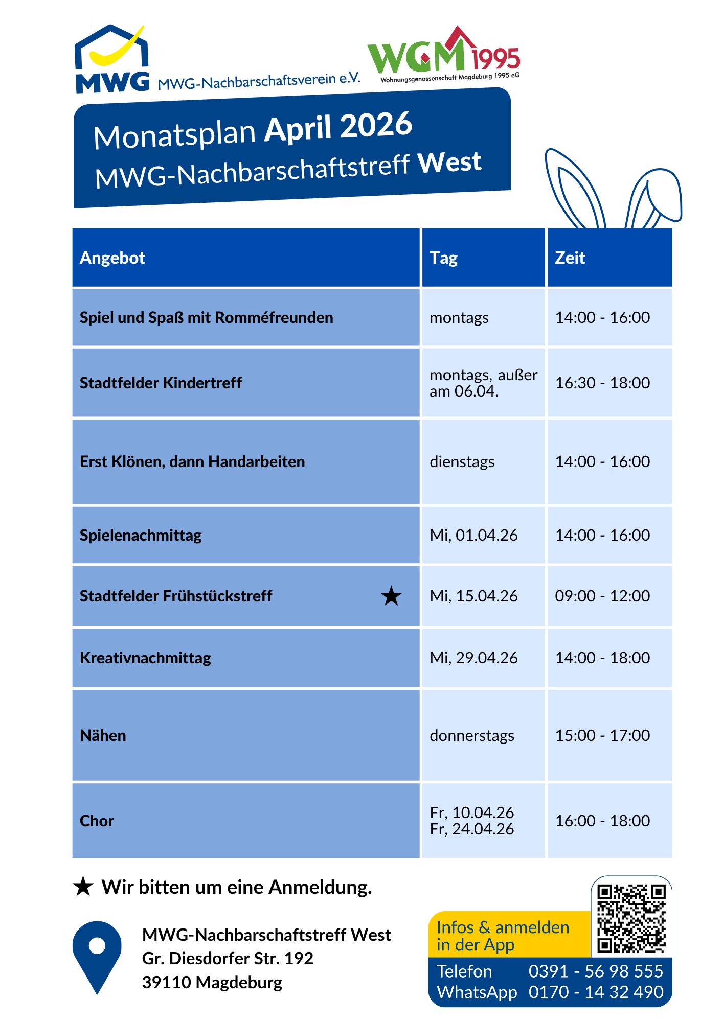 Angebote in den MWG-Nachbarschaftstreffs