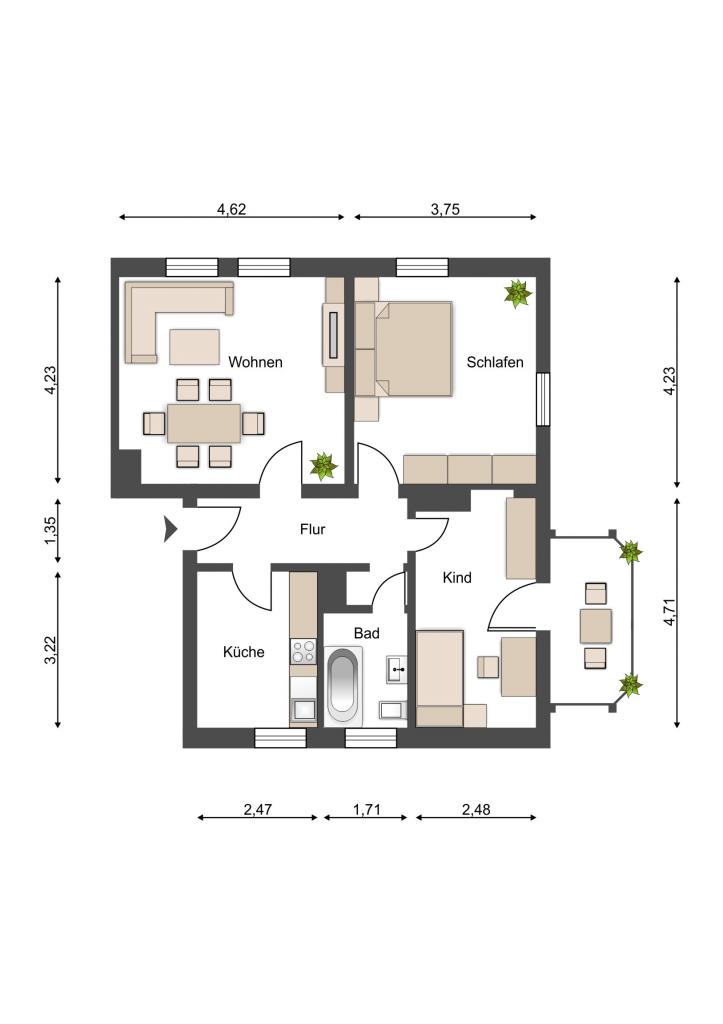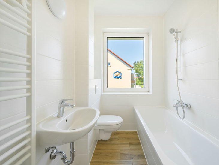 Die 3- und 4 Raumwohnungen sind großzügig geschnitten und verfügen über ein Tageslichtbad.