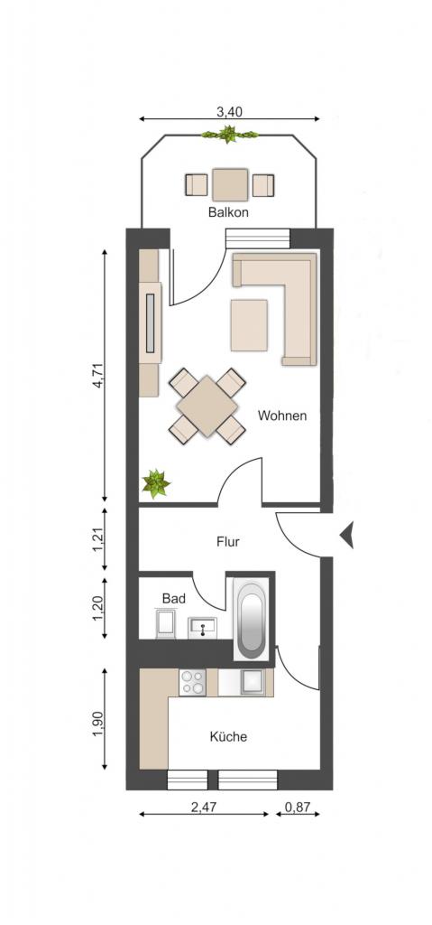 | Bad mit Wanne | Balkon |