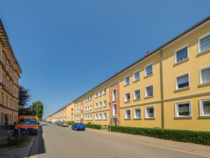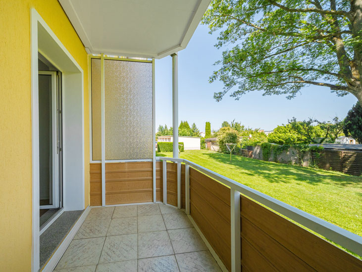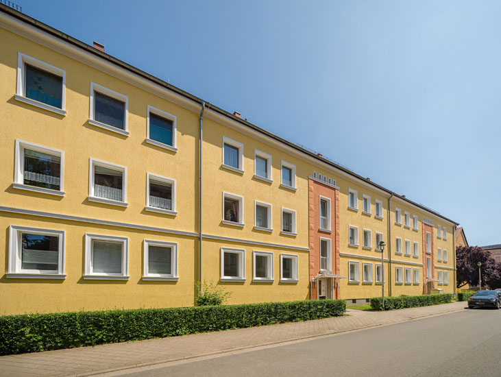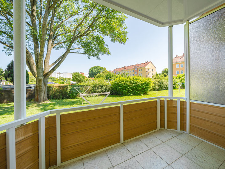 Ruhig gelegen mit Blick ins Grüne - damit besticht der Lange Weg. Die Wohnungen sind großzügig geschnitten und verfügen über ein Tageslichtbad. Vom Balkon blickt man auf eine Kleingartenanlage.
