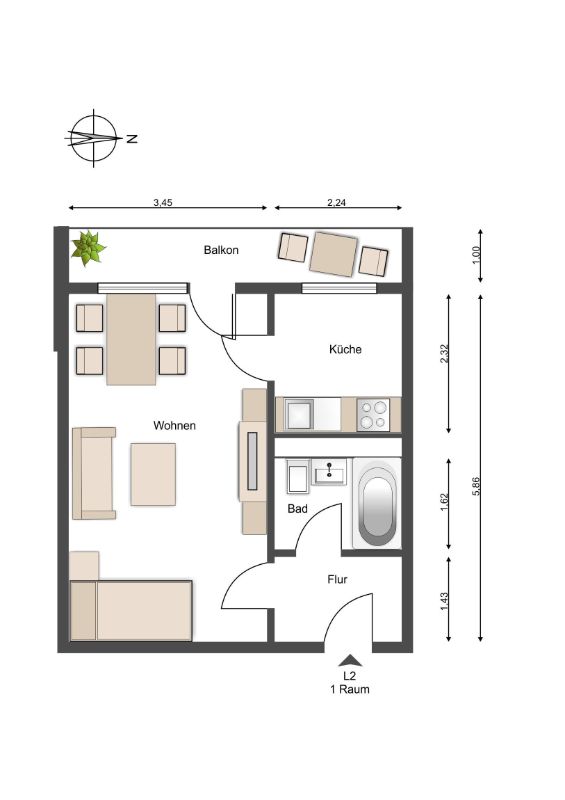 | Gesamtmiete: | 345,43 € |