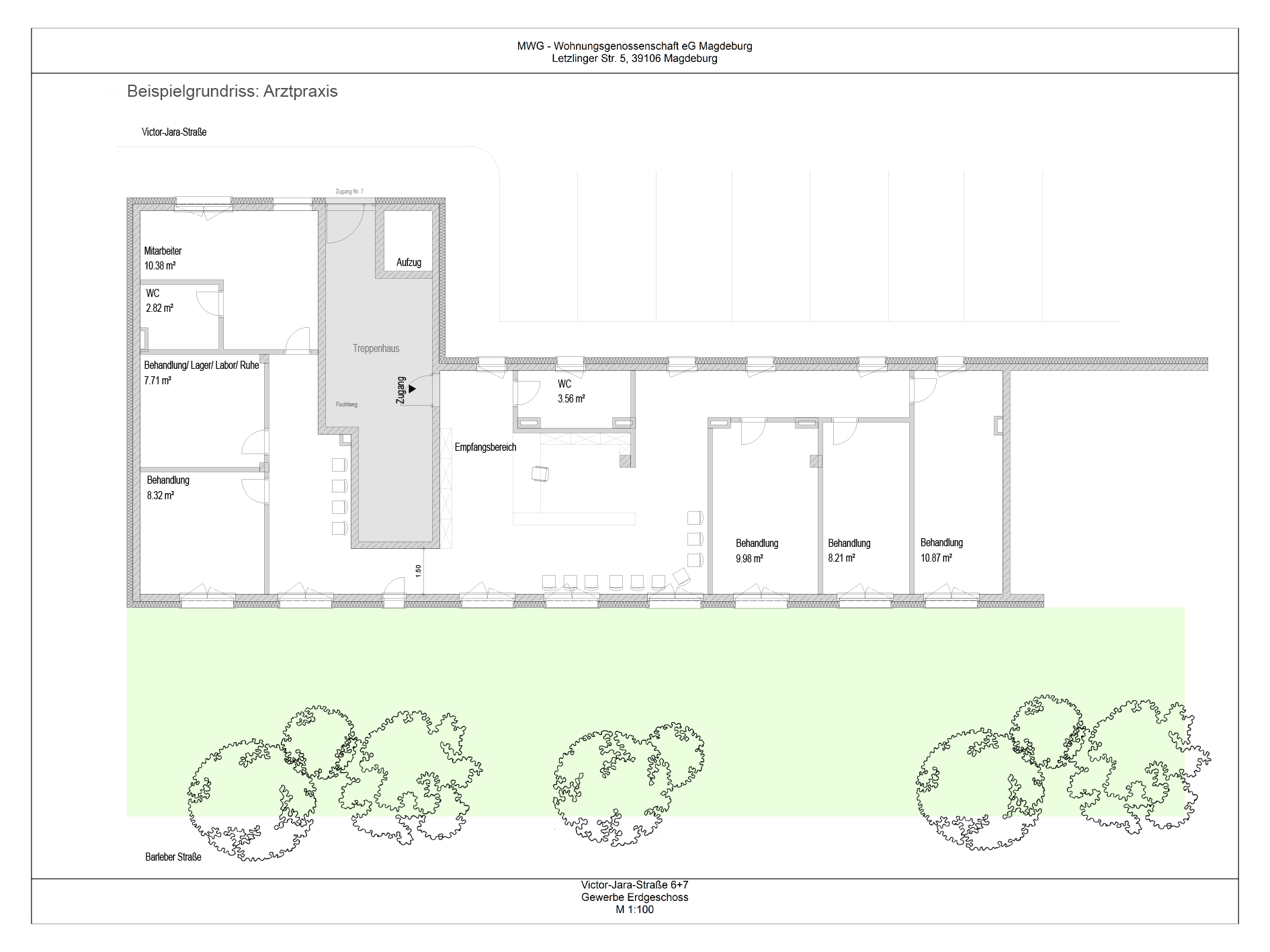 Ab 2026 bieten wir Ihnen eine moderne und barrierefreie Gewerbefläche in einem Wohn- und Geschäftshaus in der Victor-Jara-Straße 6/7 an. Sie haben die Möglichkeit, eine Fläche von bis zu 215 m² zu mieten. Zudem beraten wir Sie gerne zu individuellen Lösungen.