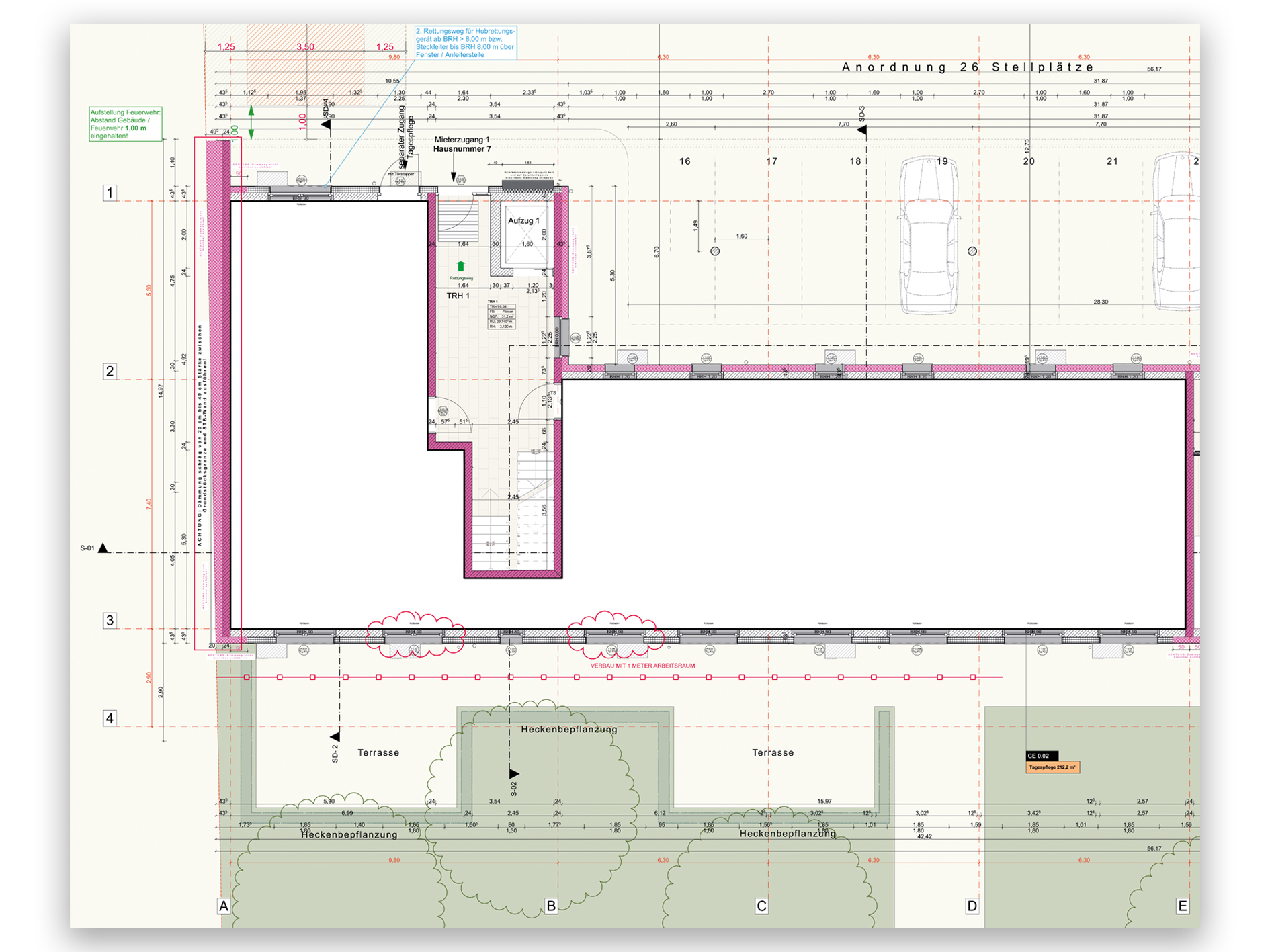- Parkplatzflächen: 2